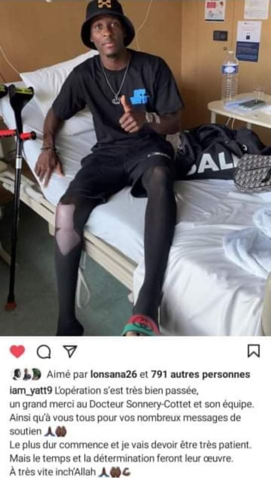 Il va désormais entamer une rééducation et sera éloigné des terrains pendant des mois. Visiblement satisfait du déroulement de l’opération, Momo Yattara a écrit ceci sur son compte Instagram.