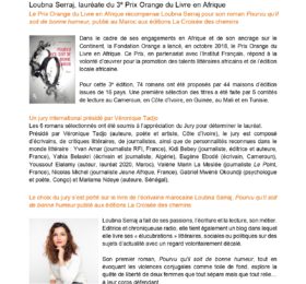 La Prix Orange du Livre en Afrique récompense Loubna Serraj pour son roman Pourvu quil soit de bonne humeur, publié au Maroc aux...