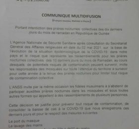 Ramadan : voici la décision qui interdit les prières nocturnes des dix derniers jours en Guinée…