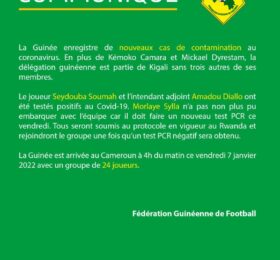 De nouveaux cas de Covid19 ont été enregistrés au sein de l’équipe nationale de football de Guinée. Lire ci-dessous le communiqué...